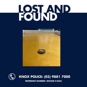 Knox Police are seeking the owner of a ring that was found on the footpath along Boronia Road in Wantirna on 5 August. The item was handed in to Knox Police Station on 5 August 2025, and officers are now hoping to reunite it with…